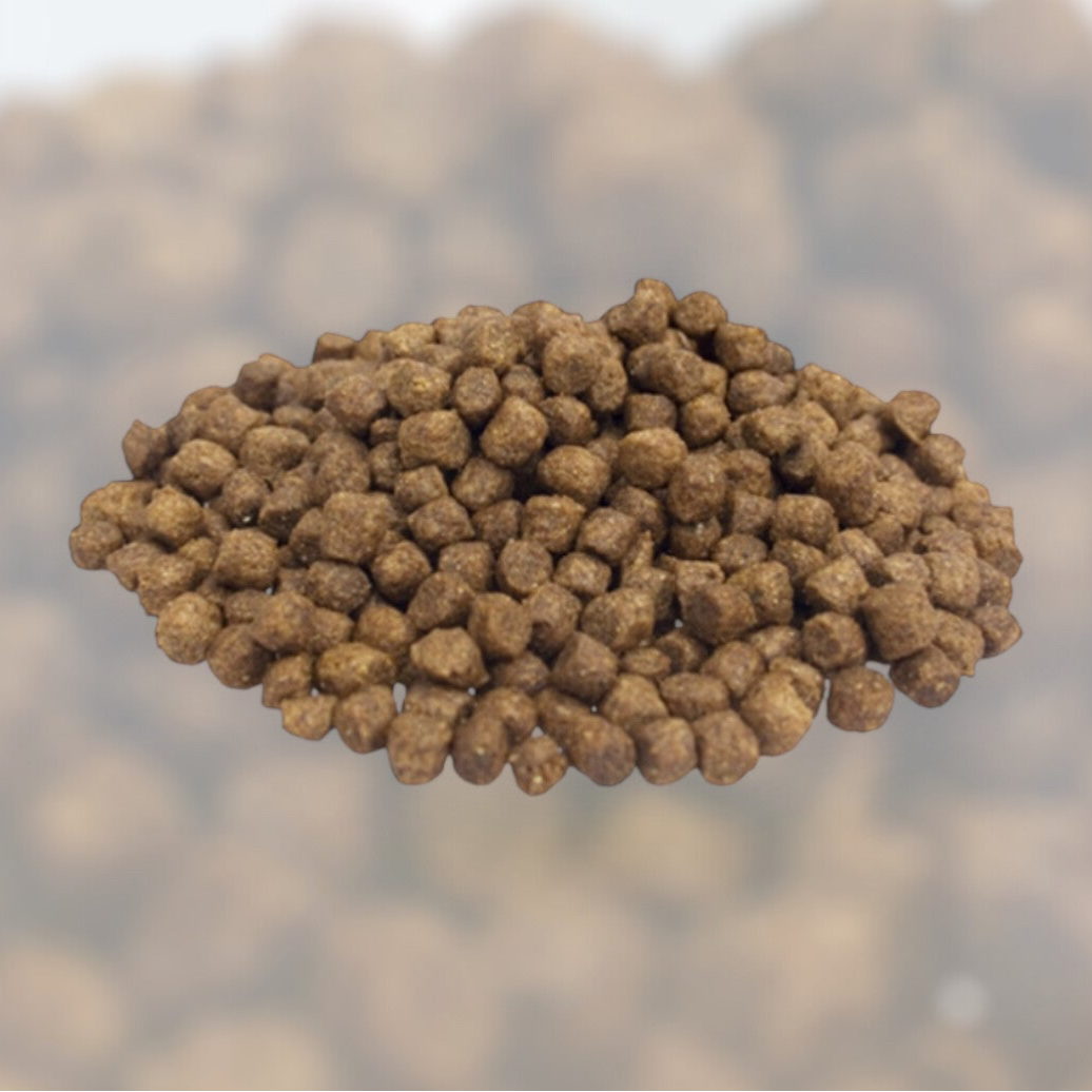 Mais, gedehydreerde kip (18%), rijst (18%), bietenvezels, kippenvet, gist, ei, zalmolie, mineralen