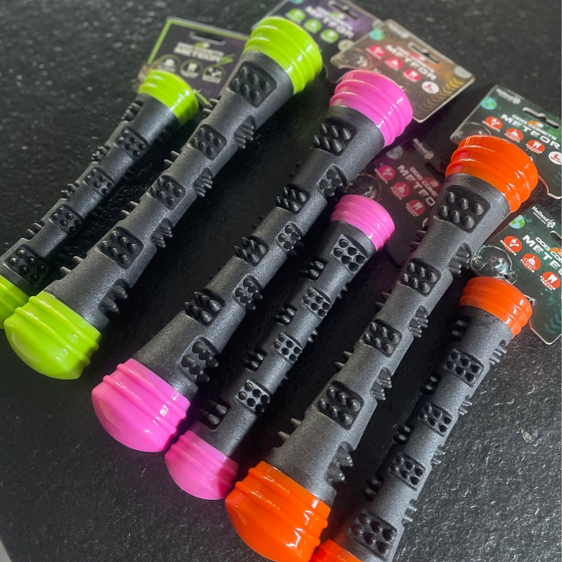 Deze werpstok is gemaakt van duurzaam rubber en stuitert perfect. Het materiaal van de werpstok masseert het tandvlees en ondersteunt de gezondheid van het gebit. De pieper maakt dit speelgoed af.